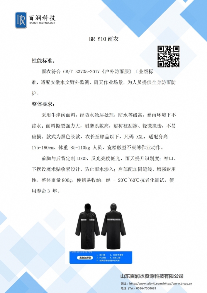 安全带 (全身五点式保险带+子母扣+安全绳);救生衣 (充气式橙色、定制反光 LOGO);帽子 (帽沿≥10cm);救生绳(含卡扣)(长度 40m、直径 8mm、 ≥5 芯);长柄雨伞(伞面直径≥1.2m、防水等级 IPX≥5);收纳箱(容量 40-50L、透明、加厚);雨衣(黑色长款、尺码 XXL、牛津纺面料、定制蓝色反光 LOGO);反光背心(荧光绿、定制蓝色反光 LOGO)。